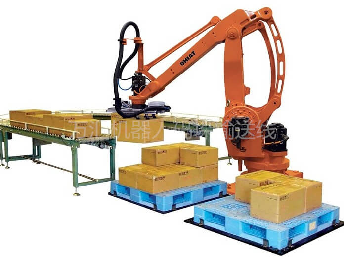 機器人碼垛系統(tǒng)是一種智能高效的碼垛機。隨著工業(yè)芯片技術上的發(fā)展及AI技術的進步,機器人的智能性已經代替人類的初步勞動,機器人碼垛機構靈活輕便,是工廠的明智選擇
